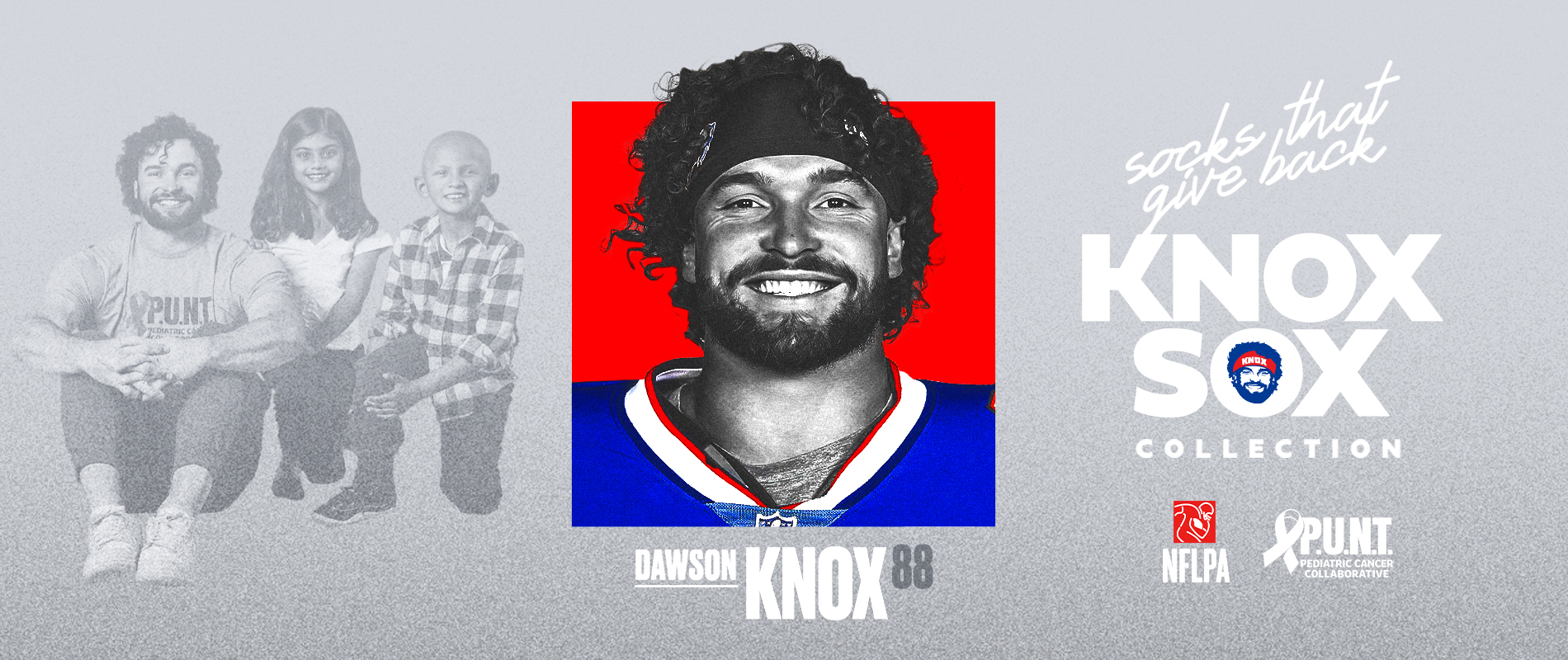 Buffalo Bills TE Dawson Knox has partnered with For Bare Feet for the Knox Sox Campaign benefitting the P.U.N.T Pediatric Cancer Collaborative! For each pair of socks sold from this "Knox Sox" Collection Page, we will be donating a percentage of the proceeds to P.U.N.T.